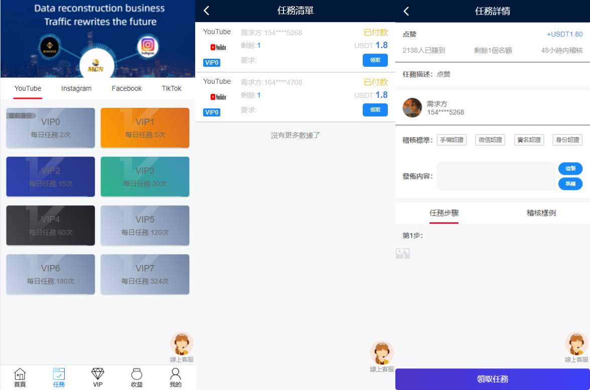 多语言海外点赞任务系统/余额宝/国际任务点赞源码 3019 前端vue开发带源代码,后端php的thinkphp框架多语言带余额宝,源码全开源玩法简介①、会员购买套餐升级②、领取任务,提交截图上传审核③、后台审核任务完成情况,给会员确认佣金④、会员得到佣金后自行提现⑤、会员可分享链接邀请好友注册将获得提成⑥、国际多语言(支持定制增加语言和二次开发) 资源下载 下载价格437.00 USDT 立即购买 5621